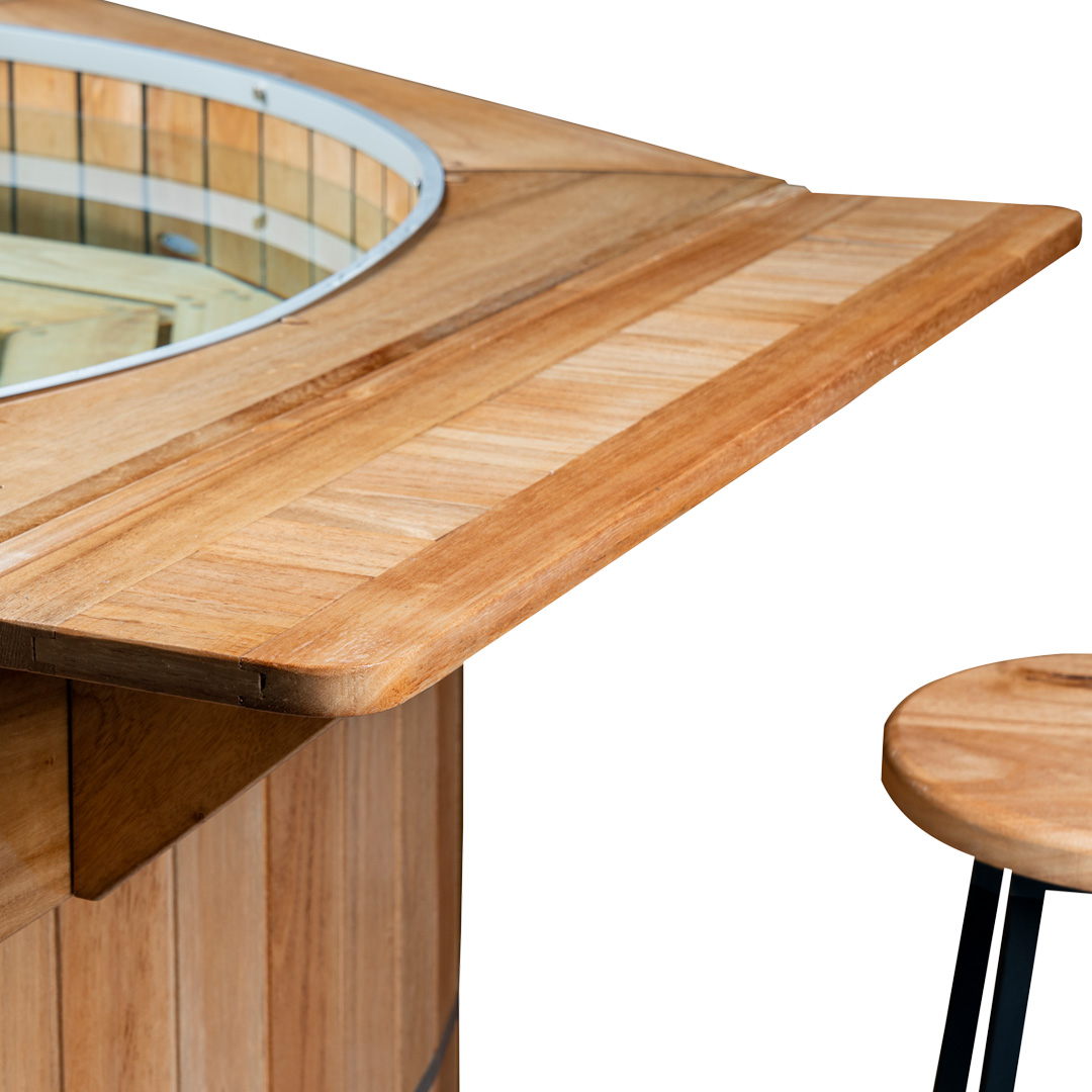 Fácil y cómodo. La barra lateral rebatible permite poder disfrutar del Hiroki tanto por dentro como por fuera. SIrve para apoyar las copas con bebida, con la opción de estar disfrutando desde fuera, sentado en un banco como desde adentro.