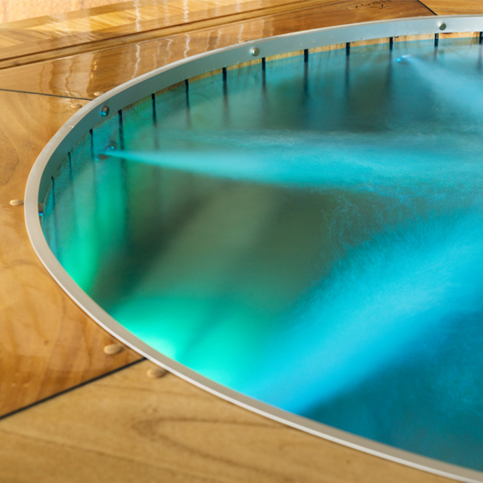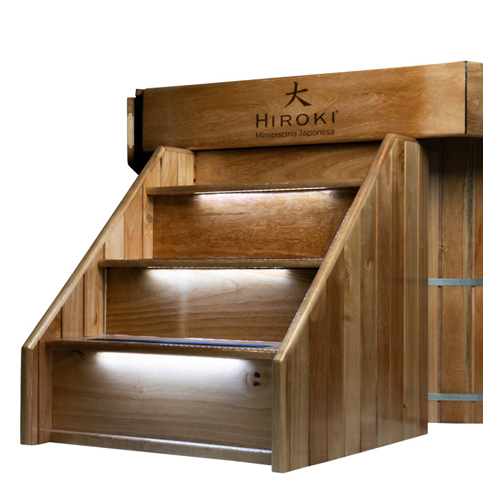 Ayudando a utilizar nuestro Hiroki en todos los ambientes y circunstancias, la luminaria de marcación en la escalera de acceso o luz de cortesía, nos brinda la seguridad necesaria para ingresar y salir de nuestro Ofuro. Incrementando a su vez la estética exterior de nuestro hidromasaje